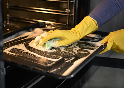 - Pay special attention to areas with built-up grease, such as the oven walls, bottom, and door.